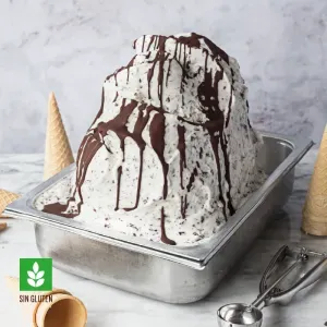 Gelato de leche con galletas Oreo cubiertas en salsa de chocolate