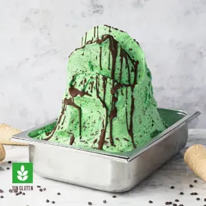 Gelato refrescante de menta con trozos de cacao belga, una combinación fresca e intensa en cada cucharada. Libre de gluten.