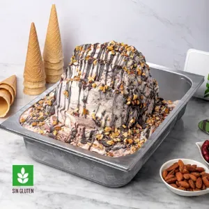 Gelato de cacao belga con veteado de leche, trozos de brownie, melcocha y fudge, una mezcla intensa y deliciosa en cada cucharada.