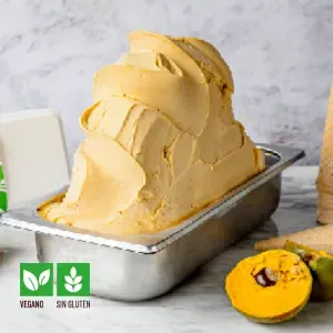 Pura lúcuma, sin aditivos. Un sorbeto vegano, sin gluten y apto para intolerantes a la lactosa.