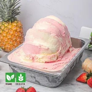 Pura piña y fresa, sin aditivos. Un sorbeto vegano, sin gluten y apto para intolerantes a la lactosa.